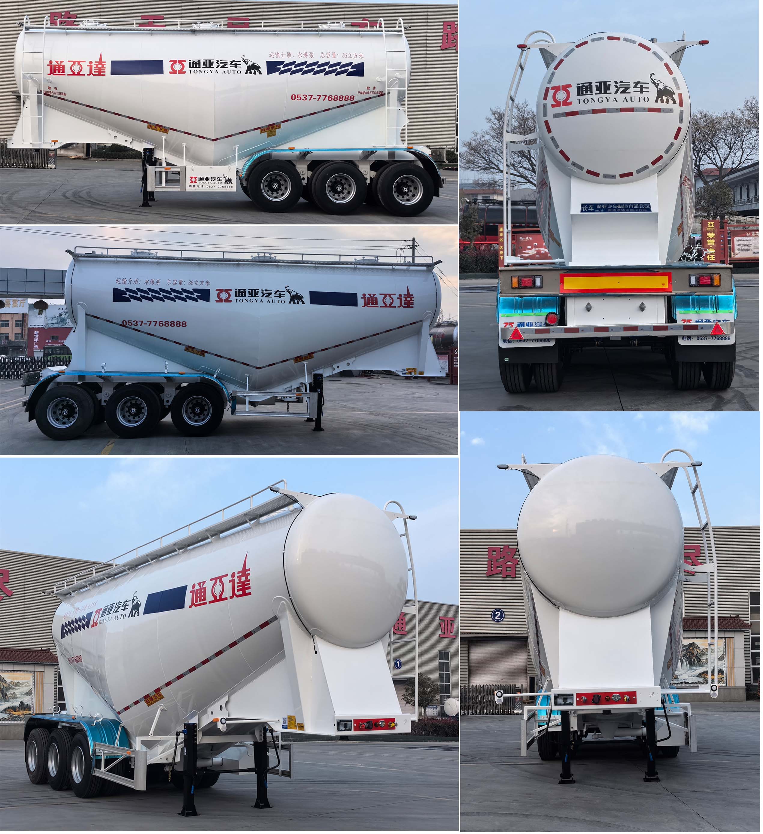 | 其它 | 顶部封闭不可开槽,后部不可开启;罐体有效容积:36立方米,允许运输介质的最大密度为:930千克/立方米;罐体外形尺寸罐体长(含封头)9620mm,最大截面处宽2550mm,最大截面处高3150mm,前后封头直径为2010mm(选装前后封头直径为1960mm),选装罐体外形尺寸罐体长(含封头)9120mm,最大截面处宽2500mm,最大截面处高3150mm,前后封头直径为2010mm(选装前后封头直径为1960mm);选装罐体外形尺寸罐体长(含封头)8530mm,最大截面处宽2550mm,前后封头直径1710mm,当轮胎型号为11R22.5 14PR时,轮胎中间加装雨帘;选装后组合灯样式;ABS系统生产厂家:广州瑞立科密汽车电子股份有限公司,梁山顺安达汽车科技有限公司,广州市西合汽车电子装备有限公司,型号:CM2XL-4S/2M,SAD-ABS4S/2M,XH-GQ4S2M-E01;侧面及后下部防护装置所用材料材质为:Q235,侧面及后下部防护装置与车辆连接方式均为:螺栓连接或焊接,后部防护装置的主要尺寸参数:断面尺寸(mm)为120×68,离地高度为:500mm;车长/牵引销到车辆最前端距离/轴距/后悬对应关系为:9700\650\5550+1310+1310\880,9700\710\5550+1310+1310\820,9250\610\5200+1310+1310\820,9250\600\5150+1310+1310\880. | ||